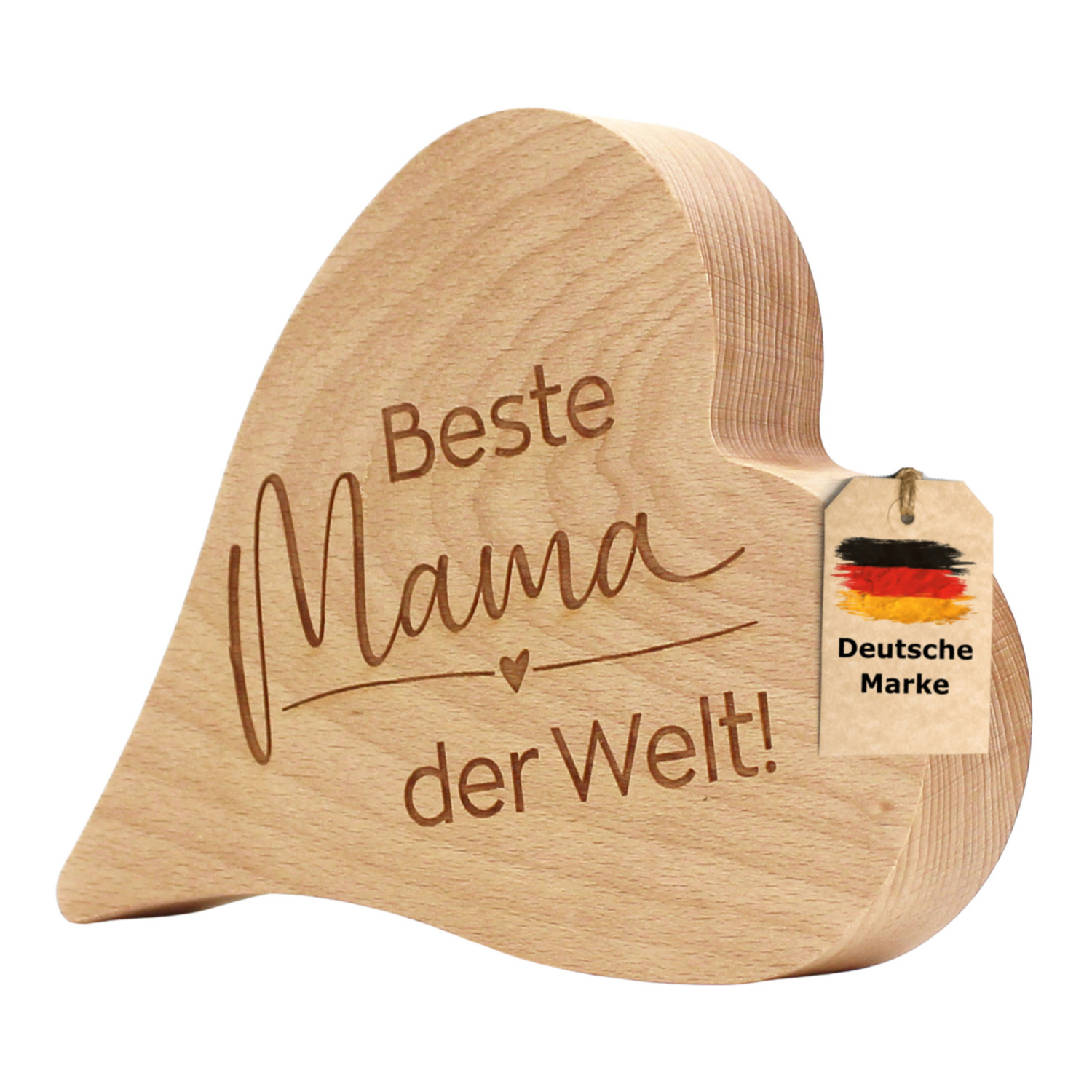 - Hochwertiges Holzherz aus Buche, fein geschliffen