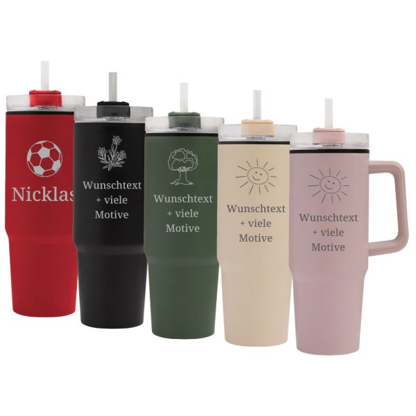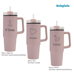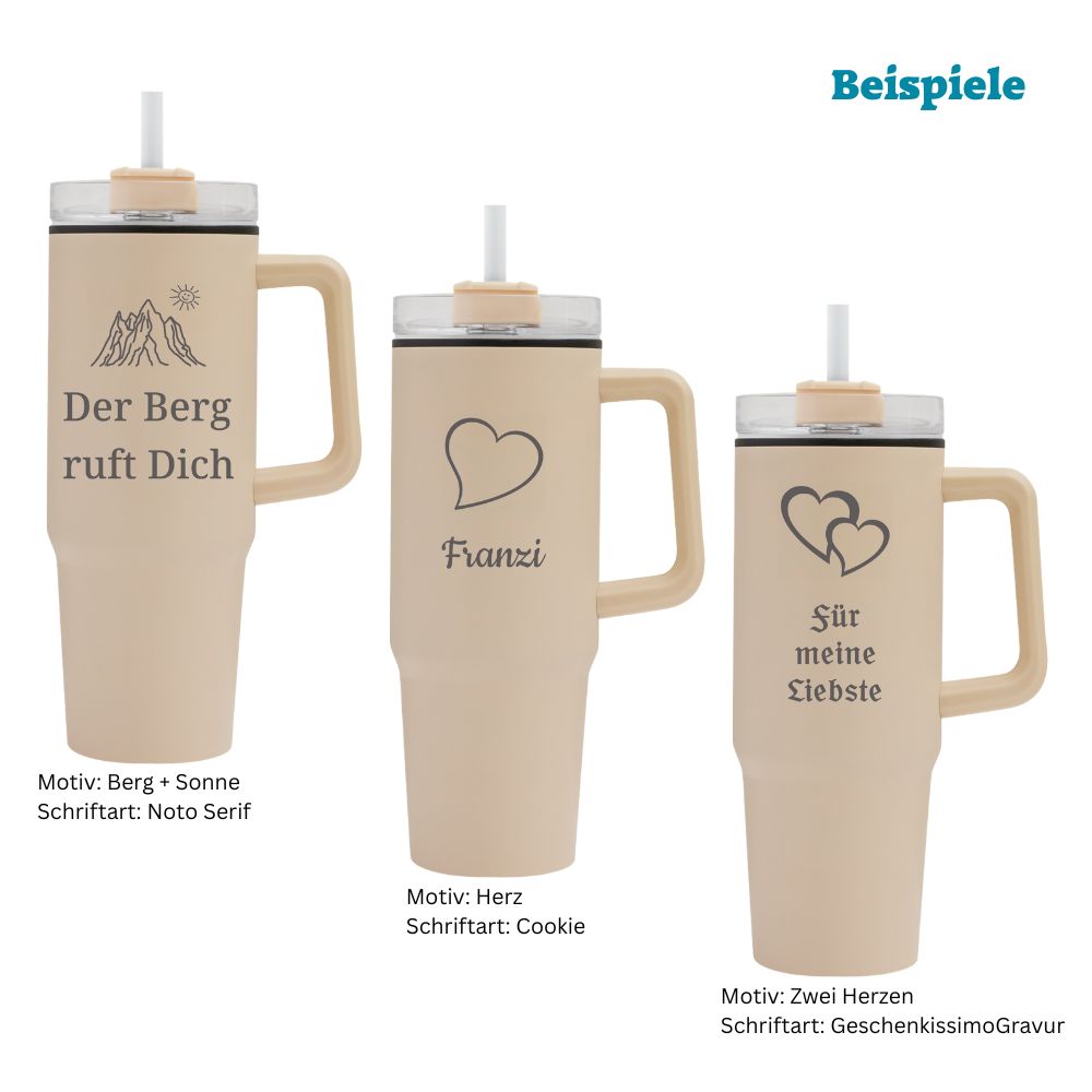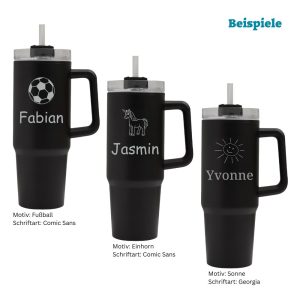 Jeder Thermobecher mit Deckel und Strohhalm wird liebevoll graviert und sorgt für glückliche Gesichter. Ein Becher, so einzigartig wie der Mensch, dem du ihn schenkst.