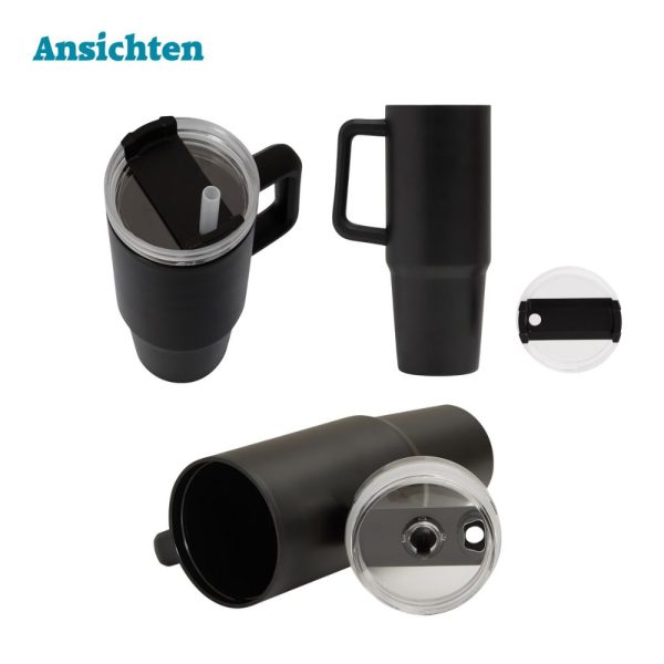 Dieser große Becher mit Strohhalm ist nicht irgendein Trinkbecher. Dieser Isolierbecher mit Henkel liegt perfekt in der Hand, während du durchstartest – egal ob im Büro oder auf Reisen.